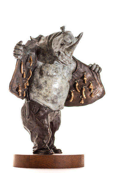 Sculpture doesn't live in a world of flat paint. It glows in the realism of dimension, shape, form, detail and artist interpretation. Although he has always harboured a creative spirit and a talent for working with his hands, it was by chance that Chris Rohm started sculpting. After a gap year in Europe, he returned to start working in a bronze casting foundry where he quickly developed a real love of the whole process of casting in bronze…it was during this time that he started working on his own pieces. Chris, a self-taught artist, captures the character of his subjects in the timelessness of bronze and is a champion of environmental awareness. “My success as a sculptor is not without difficulties, but every situation provides a learning opportunity. I'll always enjoy sculpting, accepting new challenges, doing work that excites me - that is my future.” One sculpture that is truly close to his heart is the powerful rhino, ‘TAKE YOUR BEST SHOT,’ which symbolizes the hardships the species are going through in order to survive to see another sunset. The sculptured body is armour plated which resembles the struggle of law enforcement and of game rangers in their mission to protect the rhino. The horn is the focal point and takes the sculpture to a height of 440mm. Bullets on the rhino's legs symbolise the struggle of the animal to survive blows from manmade machines that aim to kill. Standing on a pile of coins indicates what little monetary value the rhino horn is sold for in comparison to saving the animal for future generations. Although Chris’s full-time work in the construction trade is a different form of creativity, the sculpting allows him to get lost in his work and create what will become heirloom pieces. “I get so much satisfaction from sitting and figuring something out. When you look again the process has taken over and that piece of clay in front of you has become something else.”