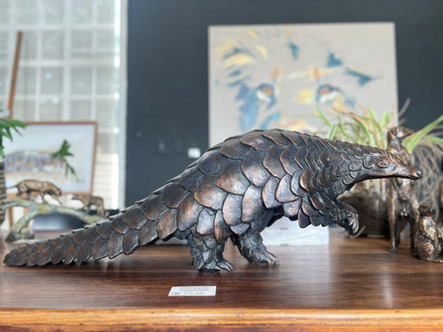 Lungisa Kala was born near Willowvale in the Eastern Cape, South Africa, and relocated to Cape Town in 2003. He began his artistic journey as a fettler in a bronze foundry, where he gained hands-on experience in the intricate processes and techniques required for creating bronze sculptures. This foundational role allowed him to develop valuable skills in crafting detailed art pieces. 🎨 To further enhance his technical expertise, Lungisa completed various courses in Tool and Die Making and Welding, equipping him with the skills necessary to excel in his craft. Over the years, he has collaborated with numerous artists and participated in a variety of projects, ranging from sculptures of 40cm to monumental pieces reaching up to 9 meters in height. His versatility also extends to the film industry, where he has created miniature sets for television commercials. Lungisa was part of a mentorship program that offered him the opportunity to create his own life-size figure, guiding it from concept to completion. A significant highlight of Lungisa’s career is his Bronze Pangolin Series. It began with an incredible sculpture of a pangolin in a walking pose, measuring 60 cm in length. Working closely with the Warren Cary Wildlife Gallery, this edition sold out quickly. With mentorship and guidance from the gallery team, Lungisa expanded the pangolin range to include various poses, featuring both walking and curled pangolins. This collection now ranges from miniatures to a spectacular life-size pangolin measuring 1 meter long, showcasing his dedication to celebrating this unique and endangered species. Currently, Lungisa works in the construction industry while continuing to feed his passion for sculpture and wildlife. He is focused on developing a collection that celebrates wildlife in his spectacular and uniquely detailed style, demonstrating his unwavering commitment to his art. His dedication to his craft, combined with his exceptional technical skills, promises a rich and exciting future for his artistic endeavours.